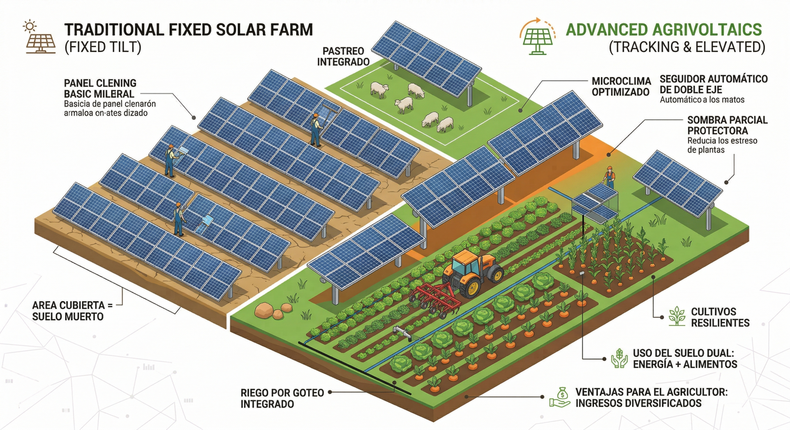 La implementación exitosa de la agrivoltaica requiere tecnologías adaptadas a las necesidades específicas de cada cultivo y ubicación. Existen diversos modelos tecnológicos, desde estructuras fijas elevadas hasta soluciones más avanzadas que maximizan la sinergia.