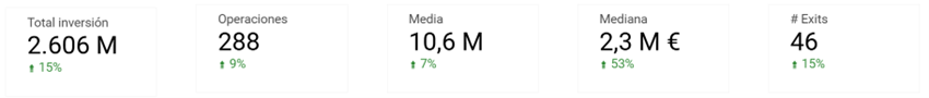 - Se incrementa el número de exits respecto al año anterior (+15%), destacando la salida a bolsa de Hotelbeds.