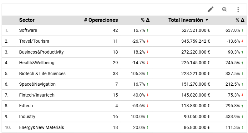 Los sectores que más capital han captado en los 9 primeros meses del año son software, con 527 M € invertidos, Travel/Tourism con 346 M € y Business&Productiviy con 272 M €.